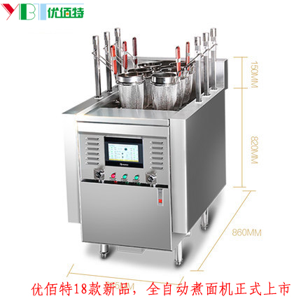 優(yōu)佰特18款全自動煮面機采用全自動控制系統(tǒng),六個煮面桶獨立控制,可根據(jù)煮面的情況,自動升降,當把生面放進面框后,面框會自動下降。